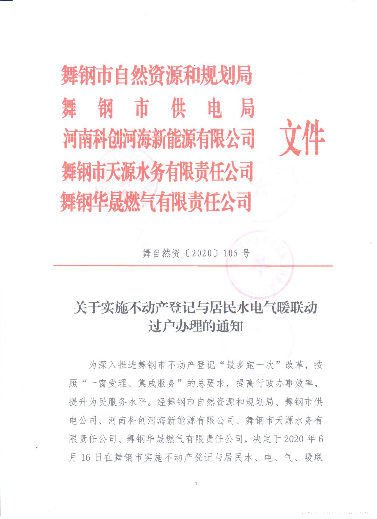 关于实施不动产登记与居民水电气暖联动过户办理的通知