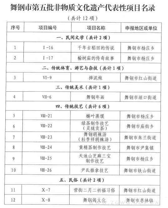第五批舞钢市县级非物质文化遗产代表性传承人名单
