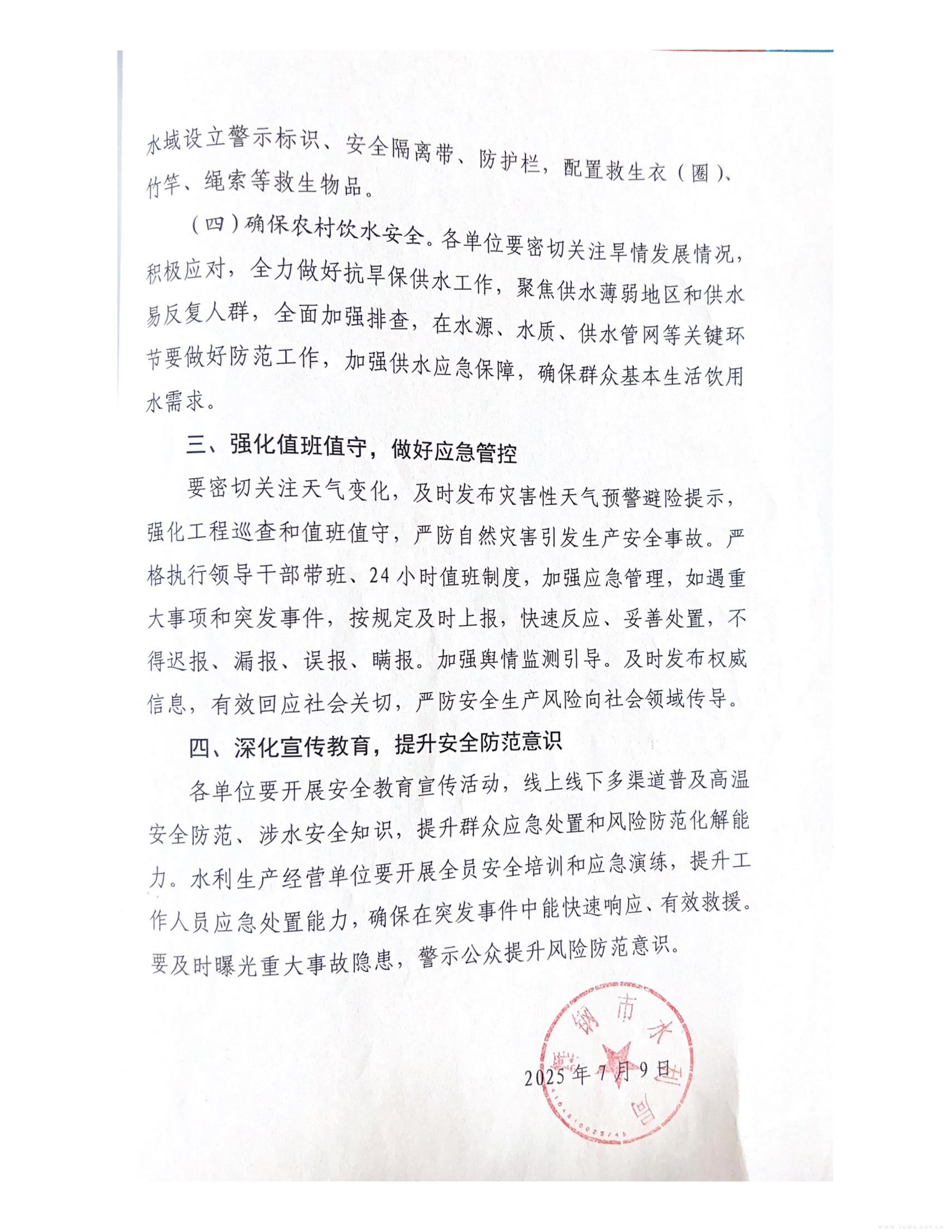 舞钢市水利局加强水利工程汛期安全管理工作的提醒函