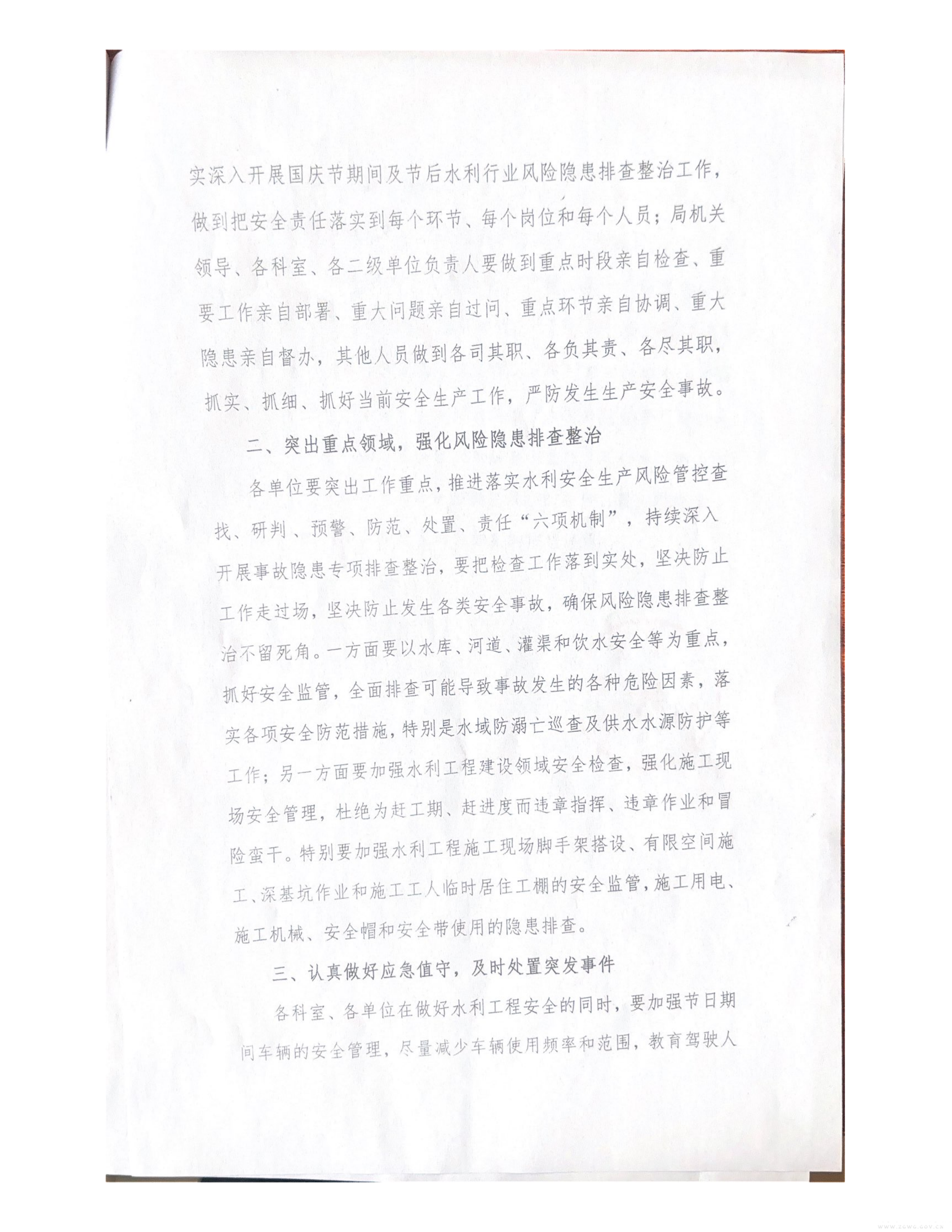 舞钢市水利局国庆中秋双节期间做好安全生产工作的通知